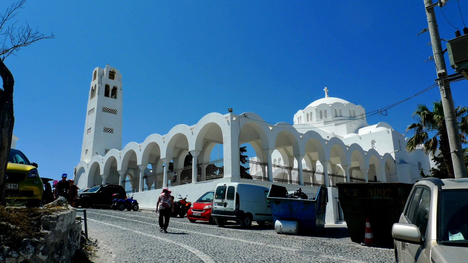 除了少數幾間主教堂,大多數的聖托里尼教堂都不具有高聳獨立的大鐘塔;